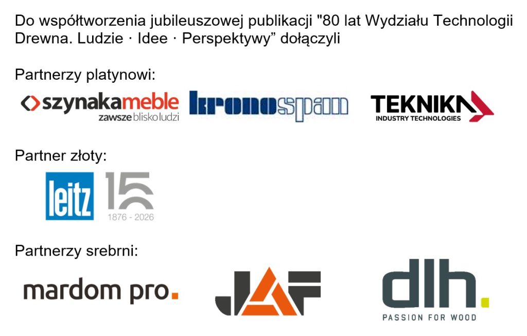 – jubileuszowy pakiet podarunkowy z publikacją przygotowaną z okazji 80-lecia kształcenia na kierunku Technologia Drewna,