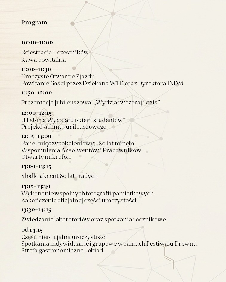 z ogromną radością zapraszam Państwa na obchody 80‑lecia kierunku Technologia Drewna! To wyjątkowa okazja, by spotkać się ponownie w miejscu, które dla wielu z nas stało się początkiem zawodowej drogi, źródłem pasji, inspiracji i trwałych relacji.